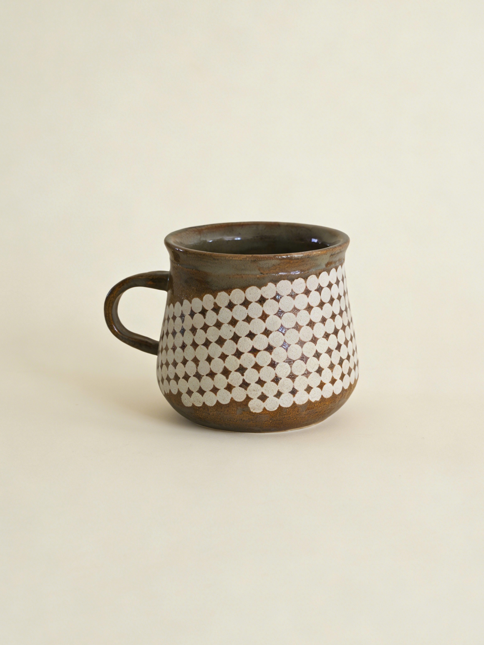 Made from stoneware clay fired at 2200F, every pattern is manually adjusted by hand. The mug is food safe, microwave safe, and dishwasher safe. Hand washing is recommended